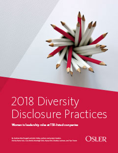 Osler’s Diversity Disclosure Practices 2018 provides an updated snapshot on the participation of women in leadership roles in corporate Canada. Learn about recent developments relating to gender diversity and gain insight into best practices for improving gender diversity among boards and executive teams.